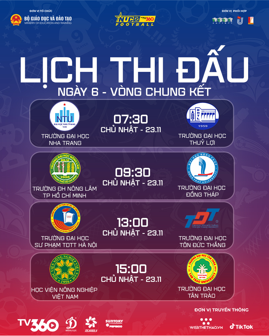 Các trận đấu vòng chung kết Giải bóng đá sinh viên toàn quốc 2025 Cúp TV360 sẽ được tường thuật trực tiếp trên các ứng dụng của TV360.