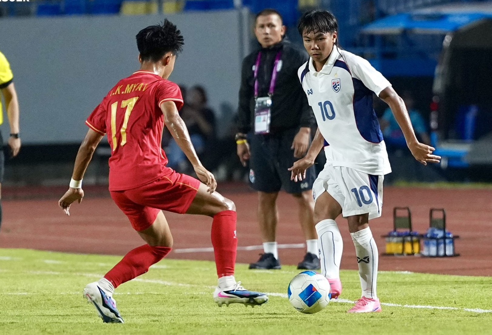 Bước ngoặt đến ở đầu hiệp hai khi Myanmar bất ngờ có bàn mở tỷ số sau một pha phản công sắc bén. Bàn thua khiến U17 Thái Lan buộc phải dâng cao đội hình tìm kiếm bàn gỡ. Tuy nhiên, sự nóng vội cùng đôi chân thiếu thanh thoát khiến họ không thể tạo ra khác biệt.