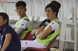 Trung vệ Tăng Tiến của CLB Quảng Nam có pha đạp bóng thô bạo khiến Phạm Tuấn Hải chấn thương. HLV Troussier ngồi trên khán đài với vẻ mặt khá đăm chiêu, lo lắng.