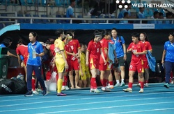 Hậu vệ Phetdavanh dính chấn thương nặng sau pha va chạm, và dù phải nằm cáng vẫn bị trọng tài rút thẻ đỏ vì nhận đủ hai thẻ vàng.