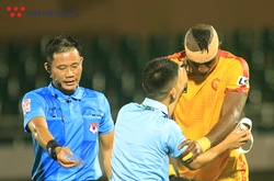 Trọng tài không rút ra tấm thẻ nào dành đến cầu thủ U23 Indonesia với hành động bóp cổ Đình Bắc.