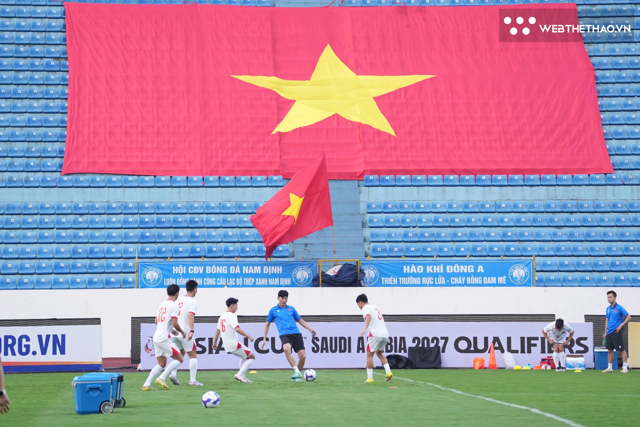 Một ngày trước cuộc đối đầu với Malaysia ở lượt trận cuối vòng loại Asian Cup 2027, đội tuyển Việt Nam đã có buổi tập làm quen sân Thiên Trường. Không khí toàn đội khá nhẹ nhàng và thoải mái khi thầy trò HLV Kim Sang Sik đã sớm giành vé vào vòng chung kết.