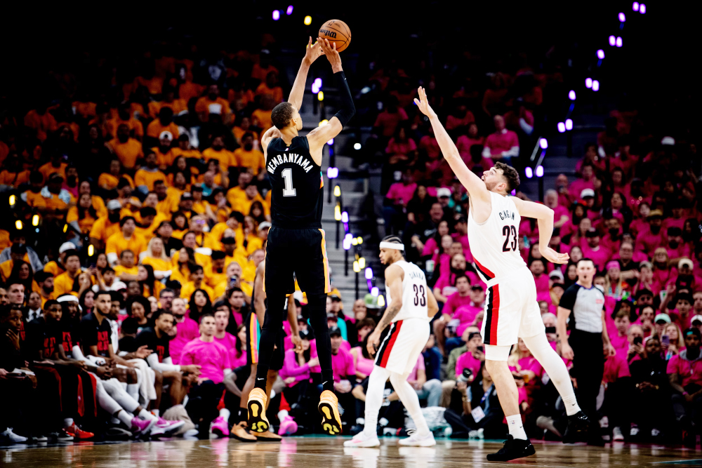 Ngôi sao của San Antonio Spurs, Victor Wembanyama, đã thi đấu vô cùng giật gân trong trận ra mắt playoff của mình đụng độ Portland Trail Blazers. Wemby đã bùng nổ với 35 điểm, ném thành công 5 quả 3 điểm trên 6 lần nỗ lực, bắt gọn 5 rebounds và có 2 cú chặn bóng, dẫn dắt Spurs đến chiến thắng thoải mái 111-98 để mở màn loạt series vòng đầu tiên.
