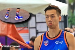 Cầu thủ Hà Minh Trí của đội THPT Yên Hòa đã gây bão với đôi giày siêu tã tại giải bóng rổ 3x3 Hà Nội mở rộng tại quảng trường Đông Kinh Nghĩa Thục.