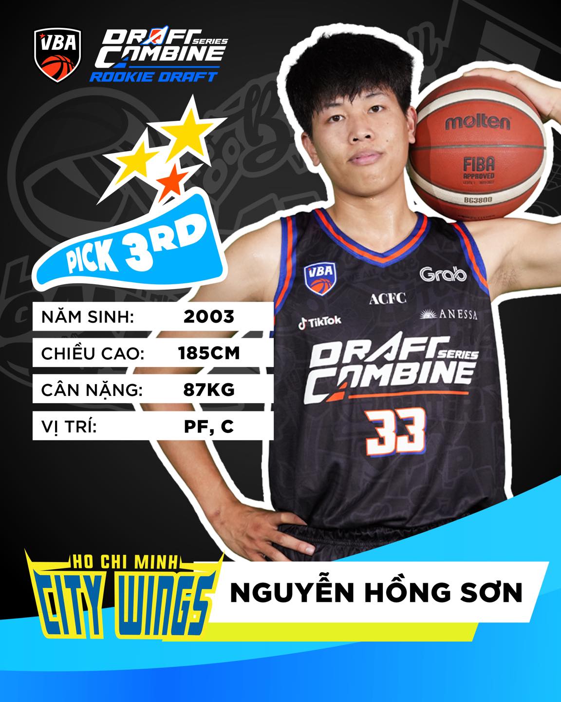 Ho Chi Minh City Wings tuy không có được lượt pick đầu tiên, họ vẫn chọn được một cái tên cực kỳ chất lượng. là Nguyễn Hồng Sơn, bigman cao 1m85, nặng 87kg từng toả sáng trong màu áo Đại học Giao Thông Vận Tải (UTC) trong 2 kỳ NUC gần nhất. Với lượt pick này, City Wings sẽ tạo điều kiện để Hồng Sơn được "Nam tiến" và bước vào đấu trường chuyên nghiệp.