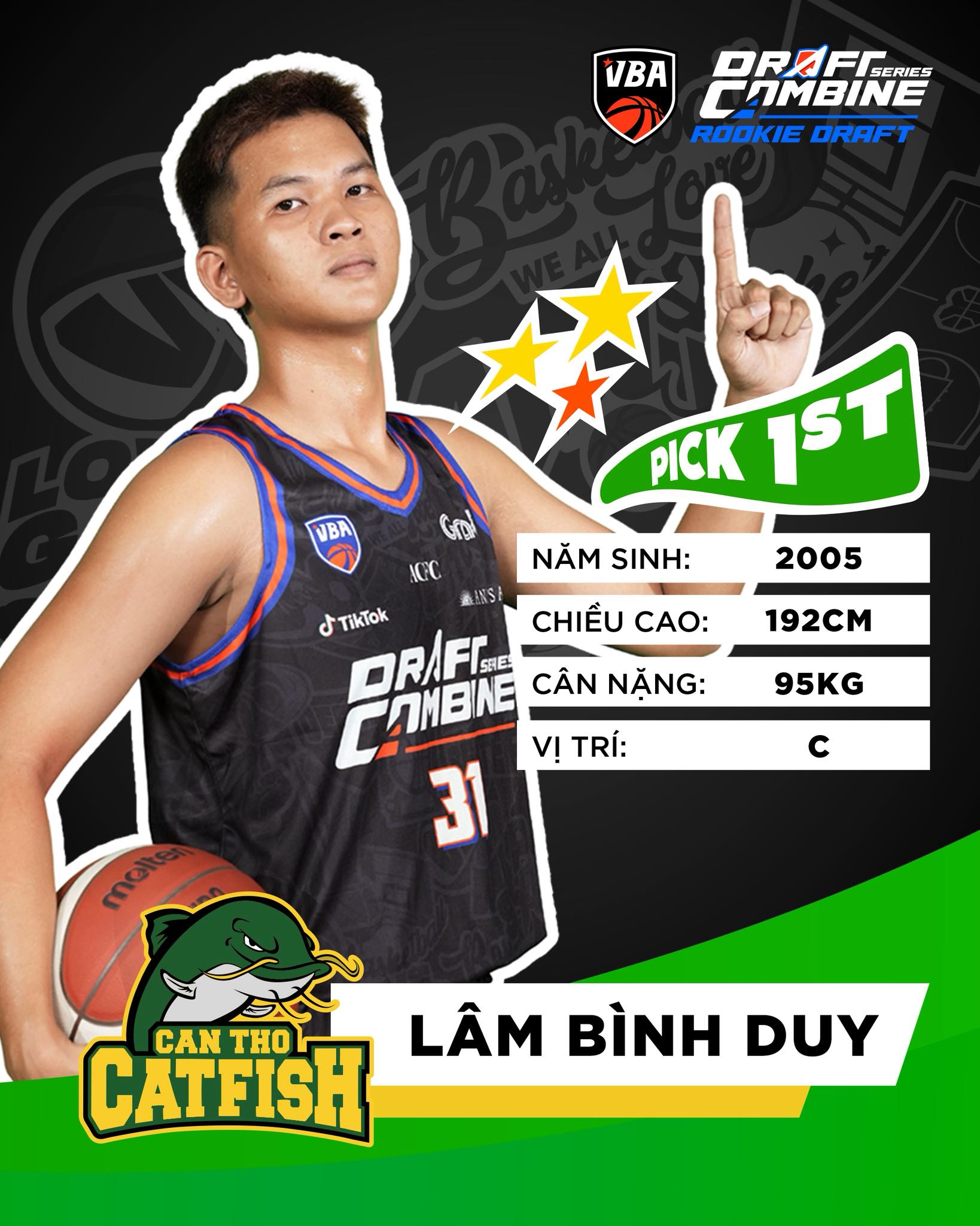 Sự kiện VBA Rookie Draft 2026 sáng 17/04 chứng kiến bất ngờ khi Cantho Catfish giành pick 1. 6 tân binh xuất sắc đã được gọi tên, sẵn sàng chinh chiến tại VBA 2026.