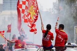Các thành viên tuyển Việt Nam ăn mừng chức vô địch ASEAN Cup với các CĐV, vợ con Phạm Xuân Mạnh bật khóc vì sung sướng, Đỗ Duy Mạnh ăn mừng cùng bà xã và con