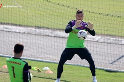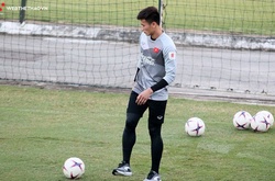 Thủ môn Bùi Tiến Dũng thu hút sự chú ý với đôi giày và đôi găng hồng mới tậu trong buổi tập chiều 1/11 của đội tuyển Việt Nam.