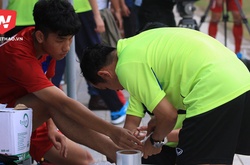 Các cầu thủ của đội U20 Việt Nam được một phen "cười thả ga" với trò chơi mà HLV Hoàng Anh Tuấn "bắt" họ phải tham gia sau buổi tập thể lực sáng 12/4.
