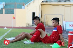 Lời thúc giục của HLV Trần Minh Chiến với Hà Đức Chinh giúp các cầu thủ vượt qua sức ì dưới cái nắng oi bức trong buổi tập ngày 11/4.