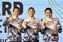 Ở nội dung chung kết 10m súng trường hơi hỗn hợp đồng đội nam - nữ vừa khép lại cách đây ít phút, Xạ thủ Olympic Mộng Tuyền và đồng đội thắng nghẹt thở Thái Lan, giành HCV SEA Games 33 đầu tiên cho bắn súng Việt Nam.