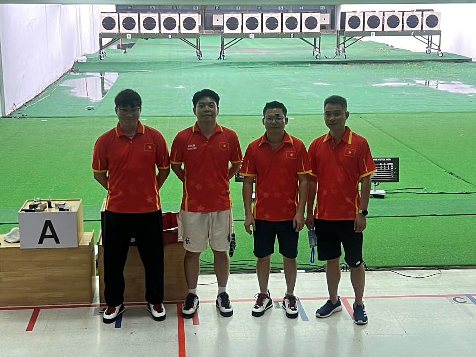 Xạ thủ kỳ cựu U40 Hà Minh Thành cùng Vũ Tiến Nam, nhà vô địch ASIAD Phạm Quang Huy vừa cùng nhau mang về tấm HCV châu Á ấn tượng cho bắn súng Việt Nam.
