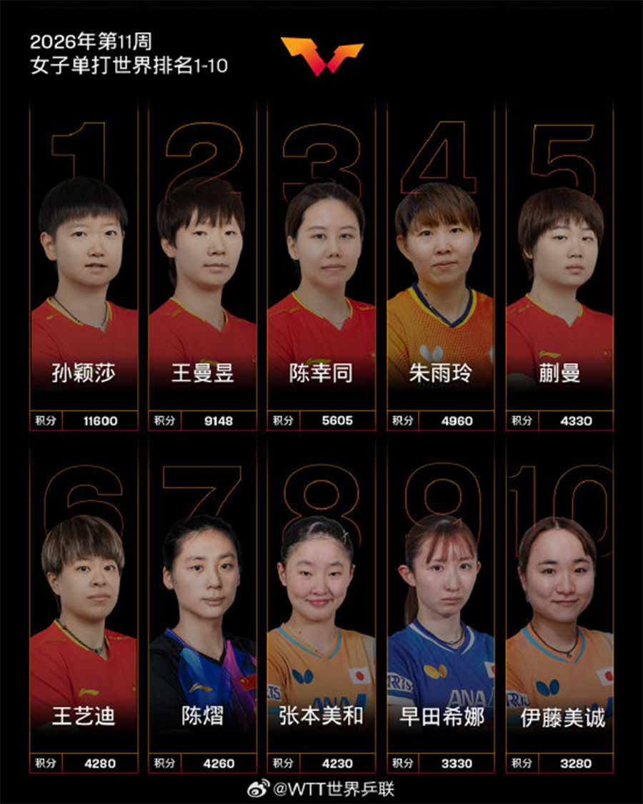 Bảng xếp hạng tuần 11 tiếp tục phản ánh sự thống trị của bóng bàn Trung Quốc ở các nội dung đơn, đồng thời cũng cho thấy sự vươn lên mạnh mẽ của nhiều tay vợt trẻ sau các giải đấu thuộc hệ thống WTT, hứa hẹn tạo nên cuộc cạnh tranh hấp dẫn trong phần còn lại của mùa giải 2026.