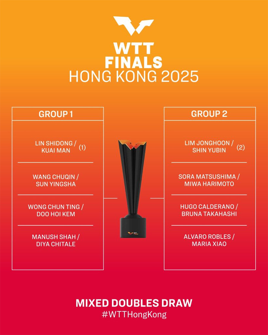 WTT Finals Hong Kong 2025 (10–14/12) quy tụ 16 tay vợt nam, 16 tay vợt nữ và chỉ 8 đôi nam – nữ xuất sắc nhất thế giới. Ngay sau lễ bốc thăm, người hâm mộ đã được “hâm nóng” bằng loạt cặp đấu đầy duyên nợ và chất lượng cao.