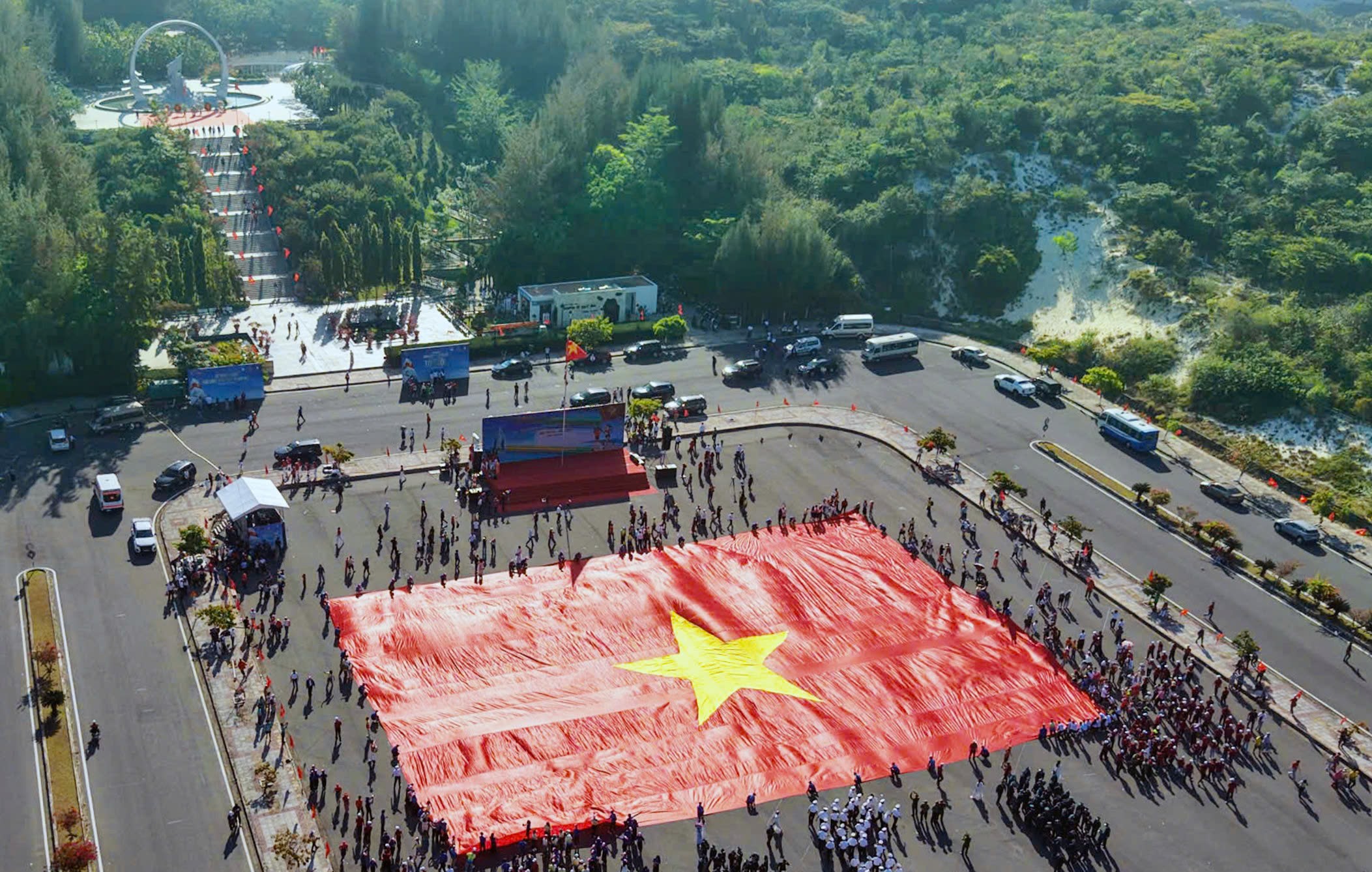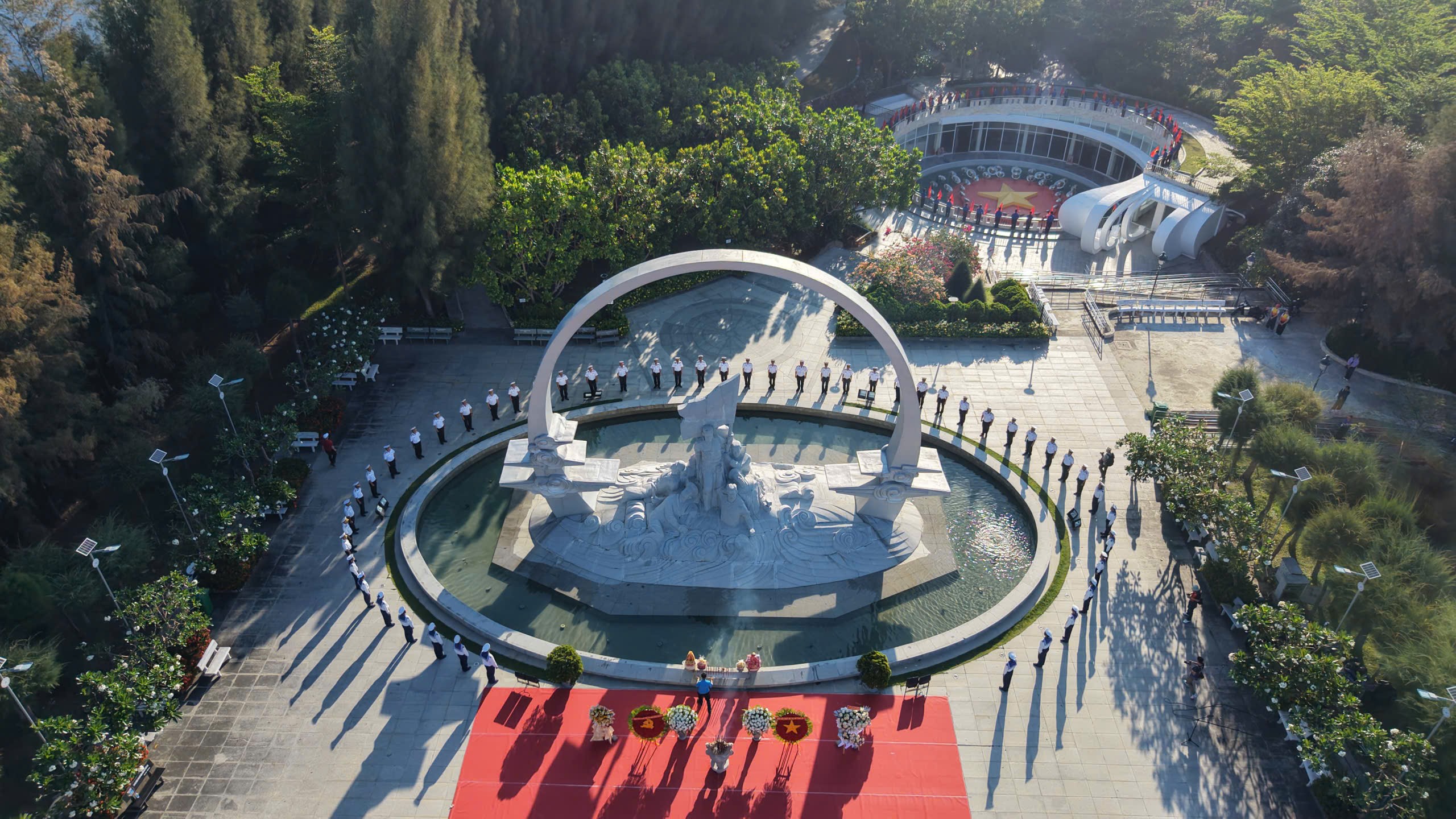 Ngay sau đó, Lễ thượng cờ với chủ đề “Vạn dặm Trường Sa - Trong tim Tổ quốc” diễn ra tại quảng trường khu tưởng niệm, tạo nên điểm nhấn đặc biệt với sự kết nối thiêng liêng giữa đất liền và biển đảo. Khi lá cờ Tổ quốc được kéo lên, màn hình trung tâm đồng thời trình chiếu hình ảnh lễ chào cờ của quân và dân tại Trường Sa, lan tỏa cảm xúc tự hào mạnh mẽ.