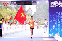 Hoàng Nguyên Thanh, người từng giành huy chương đồng SEA Games 2015 cự ly marathon (42,195km), gây ấn tượng trên đường chạy bán marathon (21,1km) Pocari Sweat Run Việt Nam 2019 với chiến thắng thuyết phục.