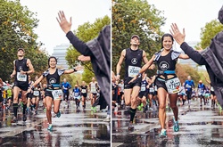 Đỗ Quốc Luật và Nguyễn Thị Oanh, hai tuyển thủ quốc gia và là nhà vô địch cự ly 21km tại Revive Marathon Xuyên Việt chặng Hà Nội bị “chiếm sóng” và chìm nghỉm trong số những vận động viên ồ ạt về đích.
