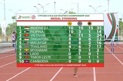 Bảng tổng sắp huy chương chung cuộc giải Vô địch Điền kinh Trẻ quốc gia năm 2025 chứng kiến màn lên ngôi bất ngờ khó tin của Ninh Bình...