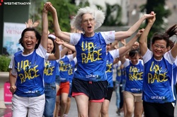 Hàng chục nữ bác sĩ, y tá, điều dưỡng viên khoa Hồi sức tích cực sơ sinh (Viện Nhi Trung ương-Hà Nội) đã bất chấp những cơn mưa của Hà Nội để xuống đường chạy bộ hưởng ứng sự kiện "UpRace" ủng hộ cho quỹ Newborns Vietnam.