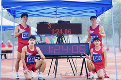 Chân chạy nước rút số một Việt Nam Ngần Ngọc Nghĩa cùng các đồng đội phá kỷ lục quốc gia chạy tiếp sức 4x200m nam tại Giải điền kinh vô địch quốc gia 2023.