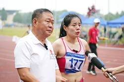 Gắn bó với cô học trò Nguyễn Thị Huyền suốt 15 năm qua, HLV Vũ Ngọc Lợi không cầm được nước mắt trong giây phút nữ tuyển thủ quê Nam Định chia tay sự nghiệp VĐV điền kinh.