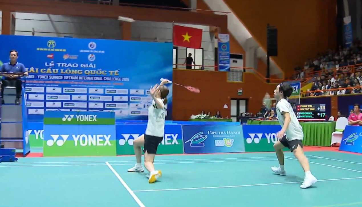 Nhà thi đấu Tây Hồ hôm nay tràn ngập sự kỳ vọng khi cặp đôi Nhật Bản Nami Matsuyama và Hiroki Midorikawa bước vào trận chung kết nội dung đôi nam nữ giải cầu lông CIPUTRA HANOI - YONEX SUNRISE Vietnam International Challenge 2026. Đối đầu với cặp Chan Yin Chak và Ng Tsz Yau (Hong Kong Trung Quốc), Matsuyama cùng đồng đội đã thể hiện đẳng cấp khi dẫn trước 18-13 trong ván đấu đầu tiên.