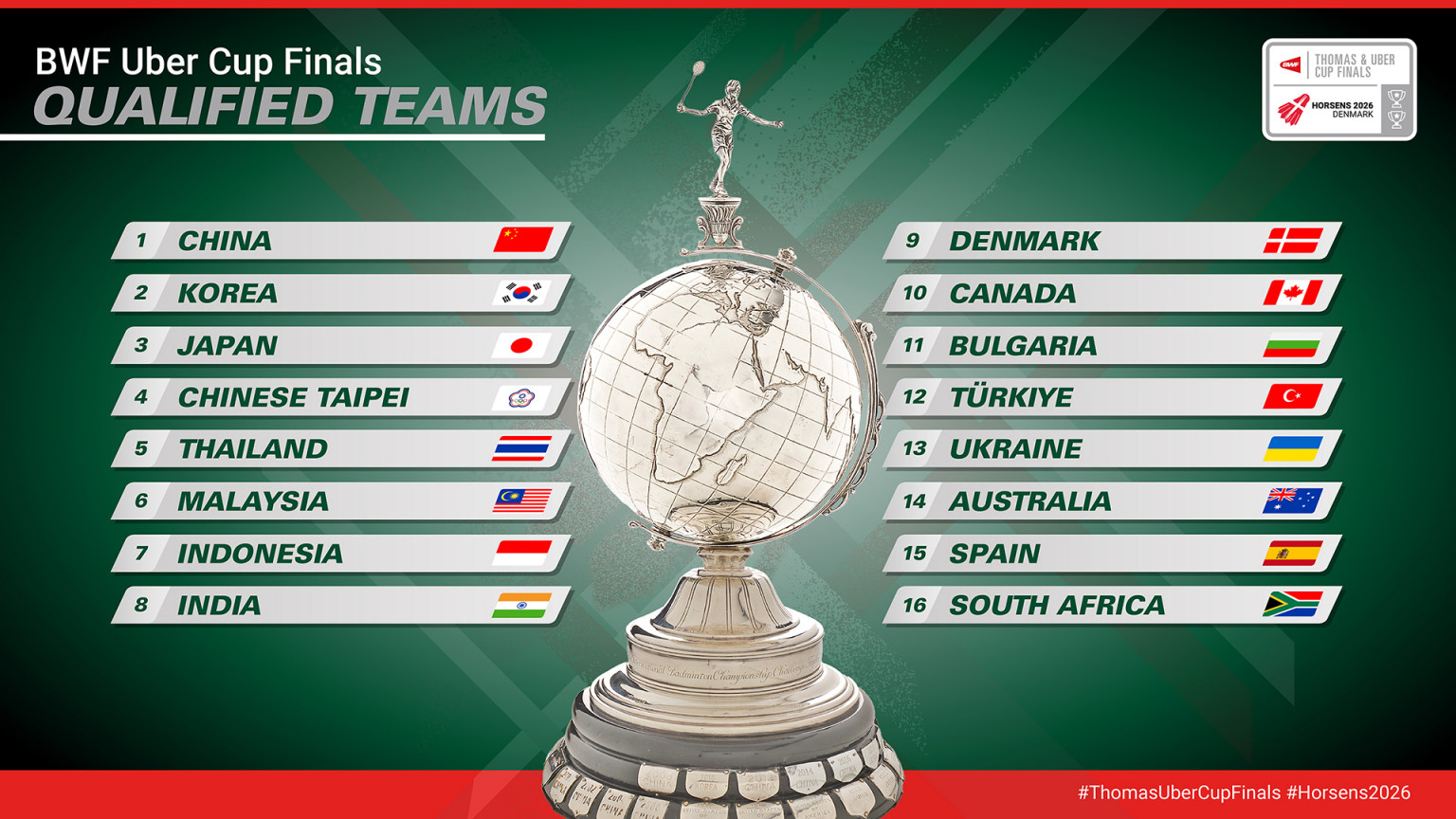 Đáng chú ý hơn là câu chuyện tại Uber Cup (nữ). Sau khi Pháp rút lui, cơ hội lần lượt được trao cho Scotland và Đức (đội xếp hạng cao hơn), nhưng cả hai quốc gia này đều từ chối. Cuối cùng, Tây Ban Nha – đội tuyển sở hữu siêu sao Carolina Marin – đã chấp nhận lời mời. Việc Tây Ban Nha góp mặt ở vị trí hạt giống số 15 không chỉ là tin vui cho người hâm mộ mà còn cho chính ban tổ chức giải đấu tại Đan Mạch.