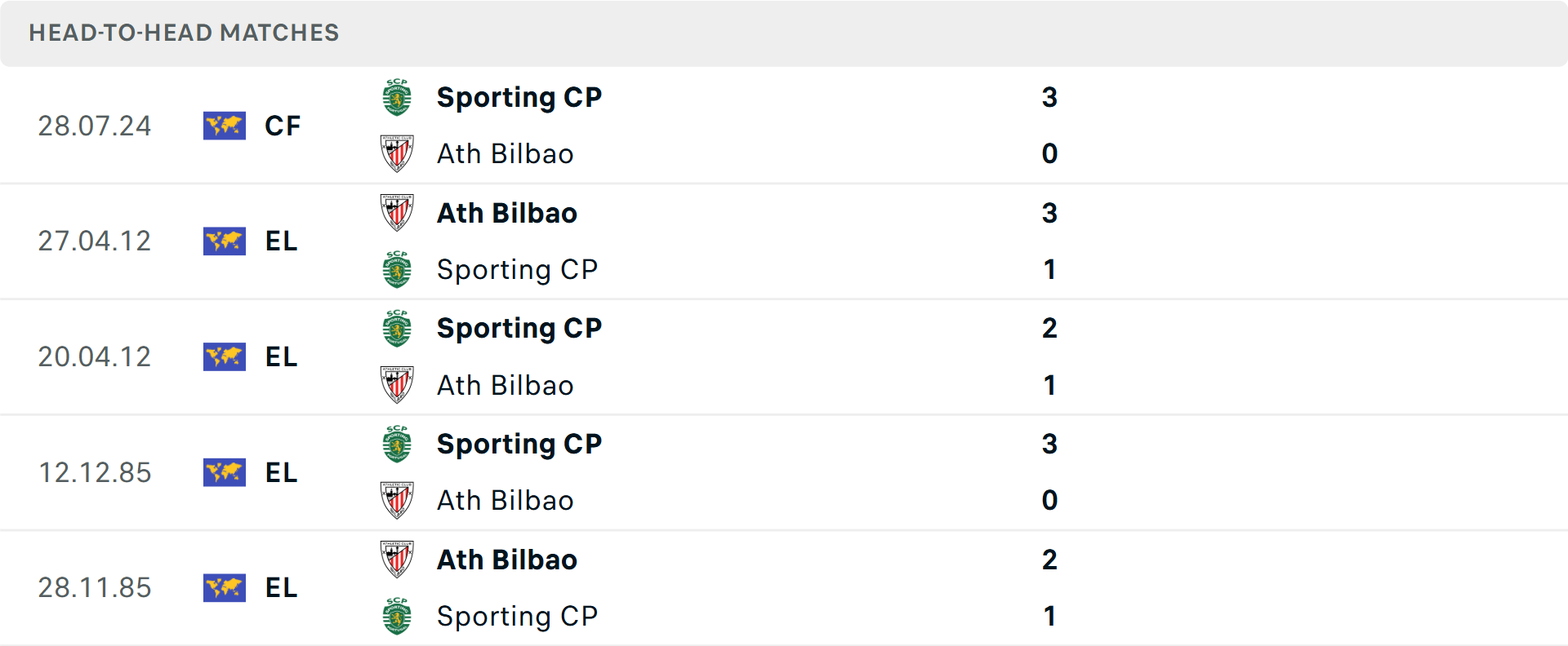 Tổng bàn thắng cả trận: Bilbao trải qua 5 trận liên tiếp vượt mốc tổng bàn thắng. Về phần mình, 9/10 trận gần đây của Sporting có từ 3 bàn trở lên.