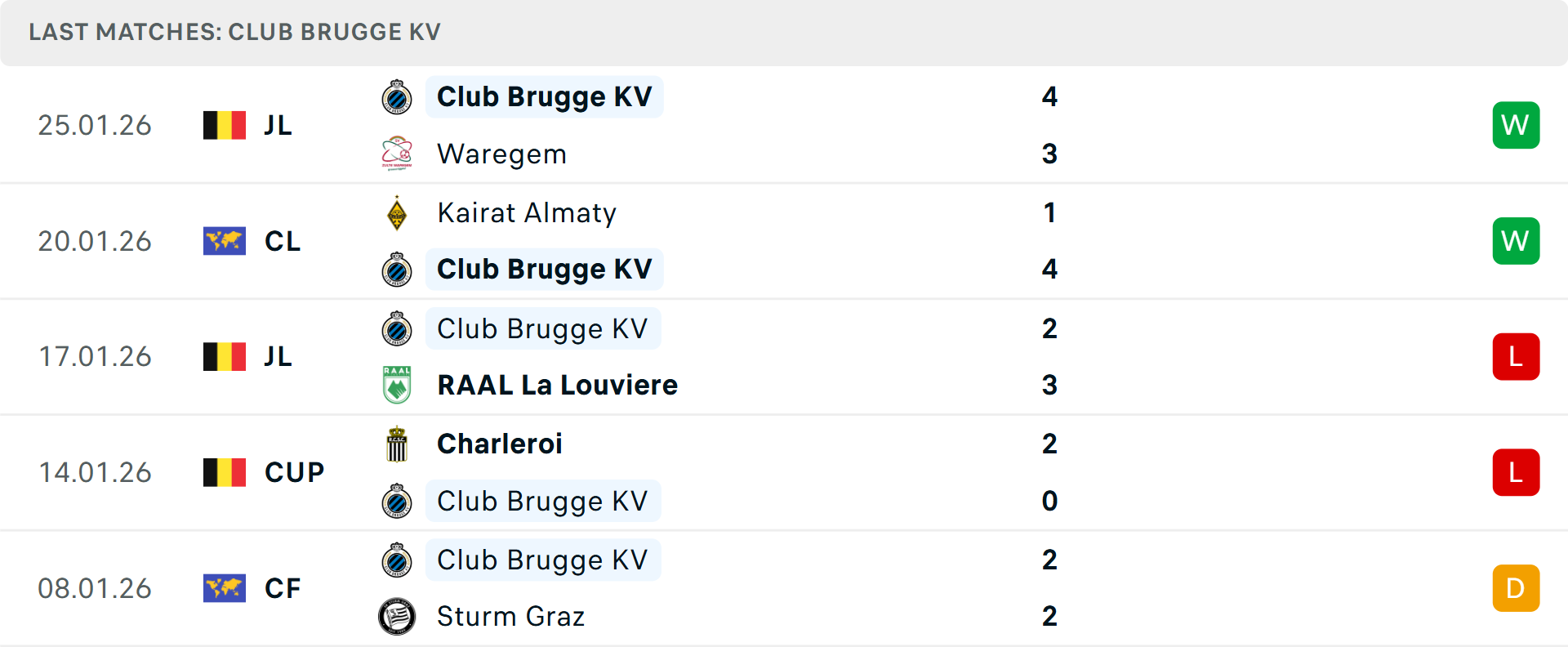 Tỷ lệ trận đấu: Club Brugge thua 4/5 trận gần đây theo tỷ số châu Á. Ngược lại, Marseille thắng 4/5 trận mới nhất.