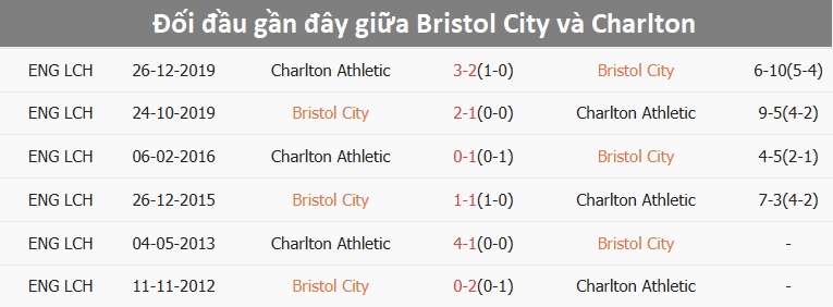 Tỷ lệ trận đấu: Bristol toàn thắng 4 trận gần đây theo tỷ số châu Á. Về phần mình, Charlton cũng thắng cả 3 trận mới nhất.