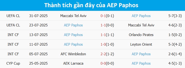 Tỷ lệ trận đấu: Dynamo Kyiv thắng cả 2 trận mới nhất theo tỷ số châu Á. Về phần mình, AEP Paphos thua 2/3 trận gần đây.