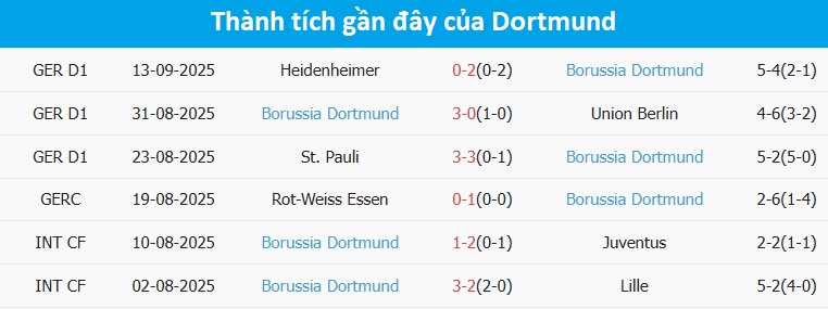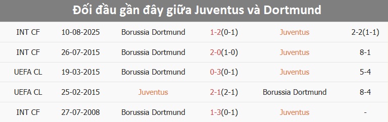 Tỷ lệ trận đấu: Juventus thắng Dortmund 4/5 cuộc đối đầu trước đó theo tỷ số châu Á. Juventus cũng toàn thắng 5 trận gần đây. Về phần mình, Dortmund thắng 2 và thua 2 trong 4 trận từ đầu mùa.
