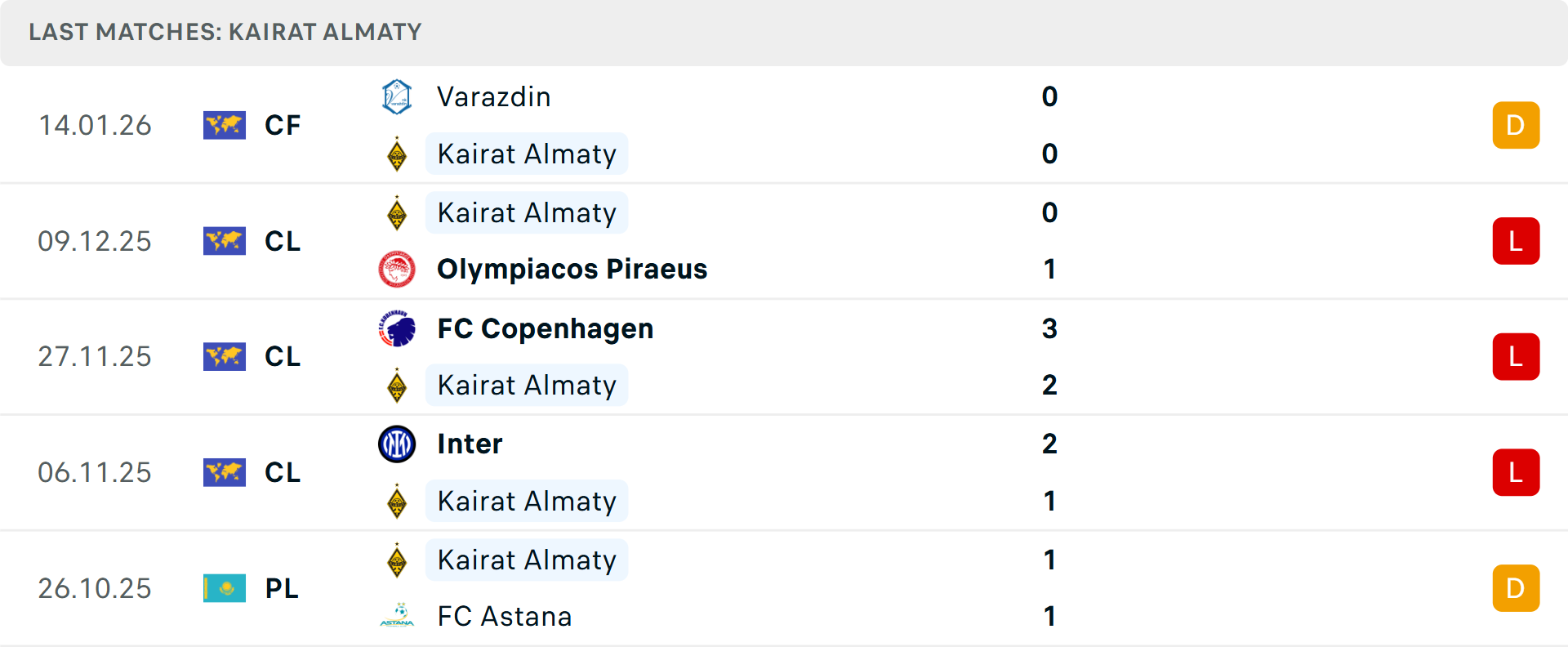 Tỷ lệ trận đấu: Kairat Almaty thắng 2 và hoà 2 trong 4 trận gần đây ở Champions League theo tỷ số châu Á. Về phần mình, Club Brugge thua cả 3 trận mới nhất, xa hơn là 7/10 trận.