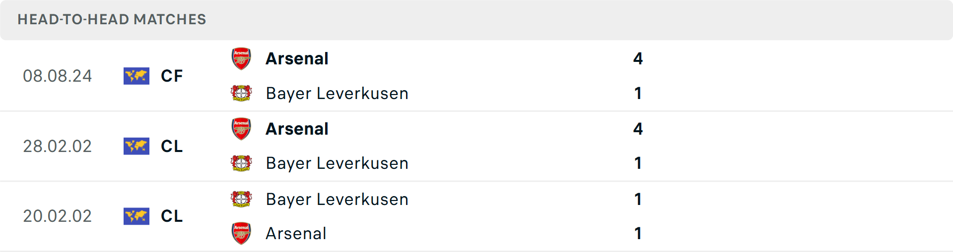 Tổng bàn thắng cả trận: 5/6 trận gần đây của Leverkusen dưới mốc tổng bàn thắng, tương tự là 2 trận mới nhất của Arsenal.