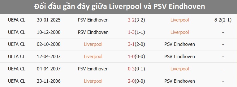 Tỷ lệ trận đấu: Liverpool thua 7/10 trận gần đây theo tỷ số châu Á. Ngược lại, PSV thắng 5/6 trận vừa qua, thắng cả 3 trận mới nhất ở Champions League.