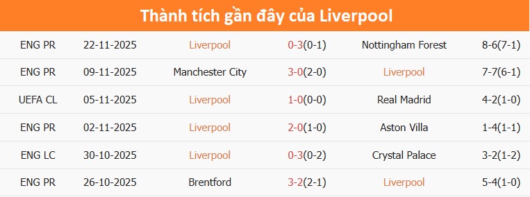 Liverpool đang trải qua giai đoạn khủng hoảng sâu sắc tại giải quốc nội, với những thất bại ê chề gần đây (thua Man City và Nottingham Forest 0-3). HLV Arne Slot phải đối mặt với một đội hình rời rạc, từ hàng thủ đến hàng công bế tắc. Tuy nhiên, tại Champions League, The Kop lại thể hiện một bộ mặt khác, thắng 3/4 trận và đang đứng thứ 8, giữ vững chuỗi 16 trận thắng liên tiếp tại Anfield ở vòng bảng.
