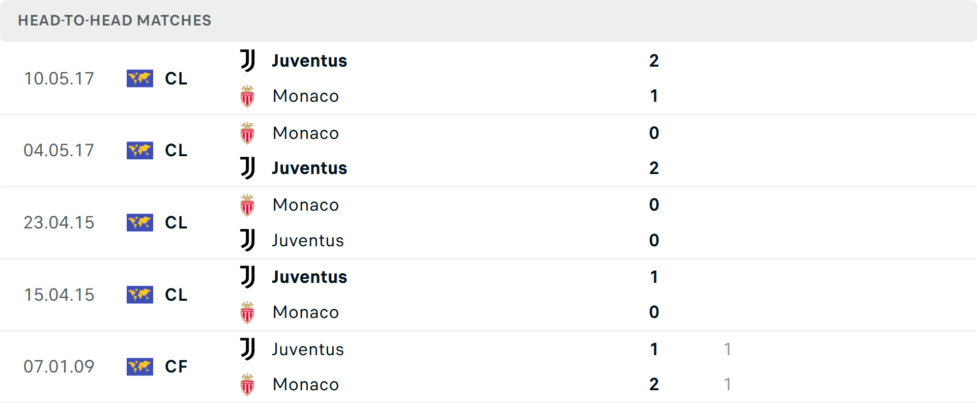 Tổng bàn thắng cả trận: 5/6 trận gần đây của Monaco vượt mốc tổng bàn thắng, tương tự là 3/5 trận vừa qua của Juventus - đội ghi 2 bàn trở lên ở 4/5 trận mới nhất.