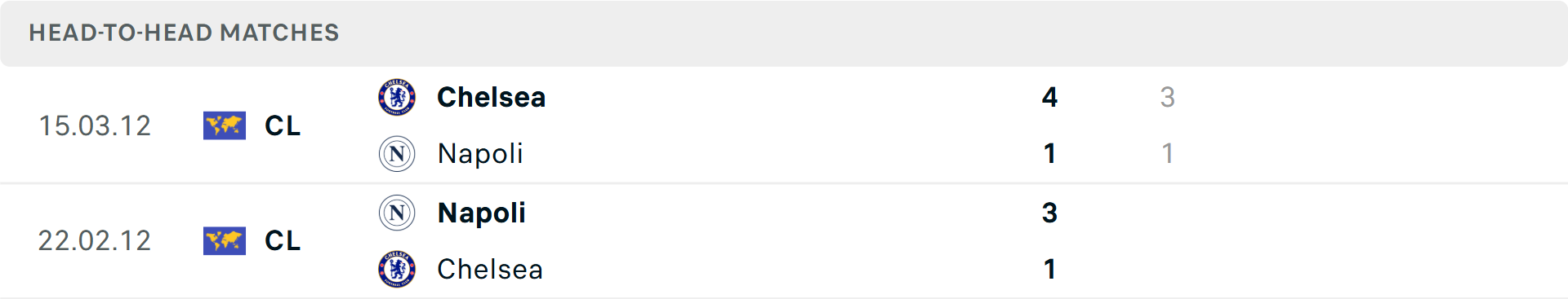Tổng bàn thắng cả trận: 3/4 trận gần đây của Napoli dưới mốc tổng bàn thắng, tương tự là 2/3 trận vừa qua của Chelsea.