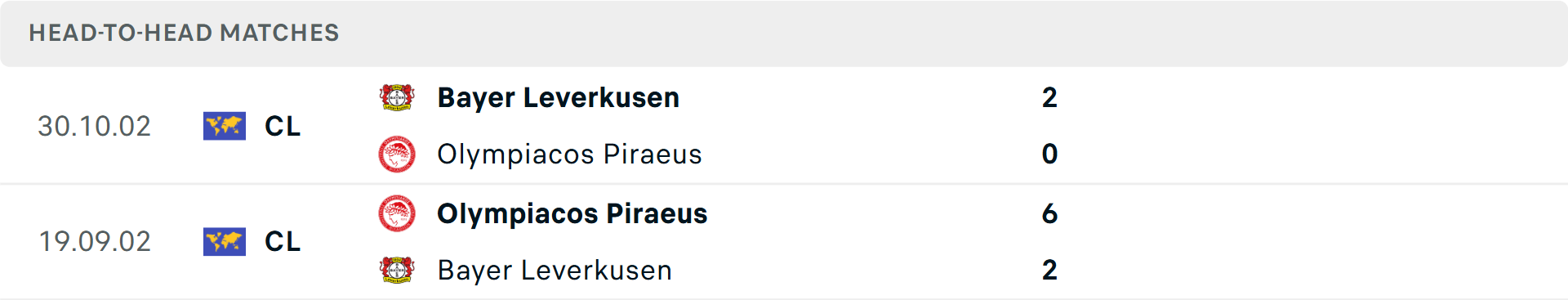 Tỷ lệ trận đấu: Olympiakos thắng 2 và thua 3 trong 5 trận gần đây theo tỷ số châu Á. Về phần mình, Leverkusen thua cả 2 trận mới nhất.