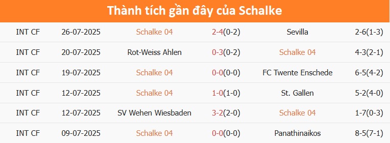 Tổng bàn thắng cả trận: Cả 9 cuộc đối đầu gần đây giữa hai đội đều bằng hoặc vượt mốc tổng bàn thắng. Điều tương tự cũng xảy ra ở trận giao hữu mới nhất của Schalke.