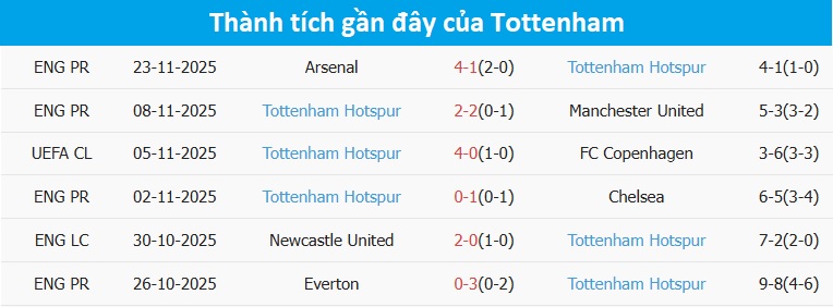 Ngược lại, Tottenham hành quân tới Paris với tâm lý nặng nề sau thất bại thảm hại 1-4 trước Arsenal ở Derby Bắc London. Hệ thống phòng ngự 5-2-3 của HLV Thomas Frank đang bộc lộ quá nhiều sơ hở và có nguy cơ bị hàng công PSG khai thác triệt để. Dù vẫn giữ thành tích bất bại tại Champions League (2 thắng, 2 hòa), phong độ gần đây của Spurs trên mọi đấu trường là không ổn định.