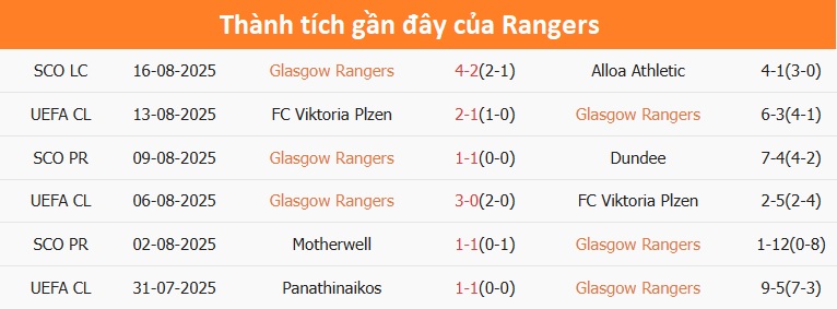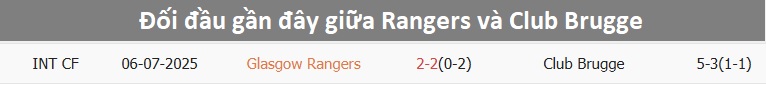 Tỷ lệ trận đấu: Rangers toàn thua 3 trận gần đây theo tỷ số châu Á, xa hơn chỉ thắng 3/10 trận. Về phần mình, Club Brugge thắng 3/4 trận vừa qua.