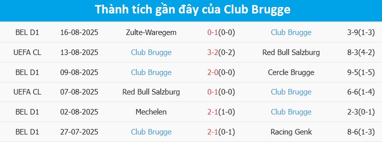 Trên thực tế, Club Brugge đã toàn thắng 4 trận gần đây, bao gồm đánh bại Salzburg cả hai lượt trận ở vòng loại thứ 3. Cộng thêm chức vô địch Siêu cúp Bỉ, tất cả là minh chứng cho thấy đội bóng này đang duy trì phong độ rất tốt và ổn định. Với thực lực cũng như kinh nghiệm lọt vào giai đoạn League mùa trước, Club Brugge đủ khả năng tạo được ưu thế ngay ở trận lượt đi trên sân khách này.