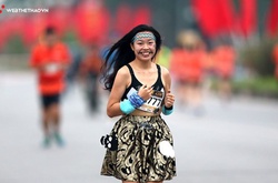 Chạy marathon trong khoảng 4 giờ đã khó với nhiều VĐV nam thế nhưng cô gái 8X còn vừa chạy nhanh vừa làm xiếc thì không phải ai cũng làm được.