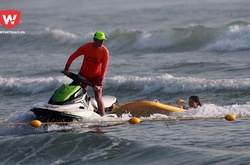 Hơn 100 triathlete đã phải gồng mình đương đầu với vô vàn cơn sóng dữ của vùng biển xứ Đà ở nội dung Sprint tại Techcombank Ironman 70.3 Vietnam 2018.