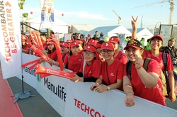 Hoa hậu Việt Nam 1994 Nguyễn Thu Thủy và tuyển thủ bóng rổ điển trai của đội Thăng Long Warriors Đặng Thái Hưng cùng hơn 200 người đã chinh phục Hồ Tây dưới cái rét căm căm của miền Bắc ngày mồng 4 Tết Canh Tý 2020.