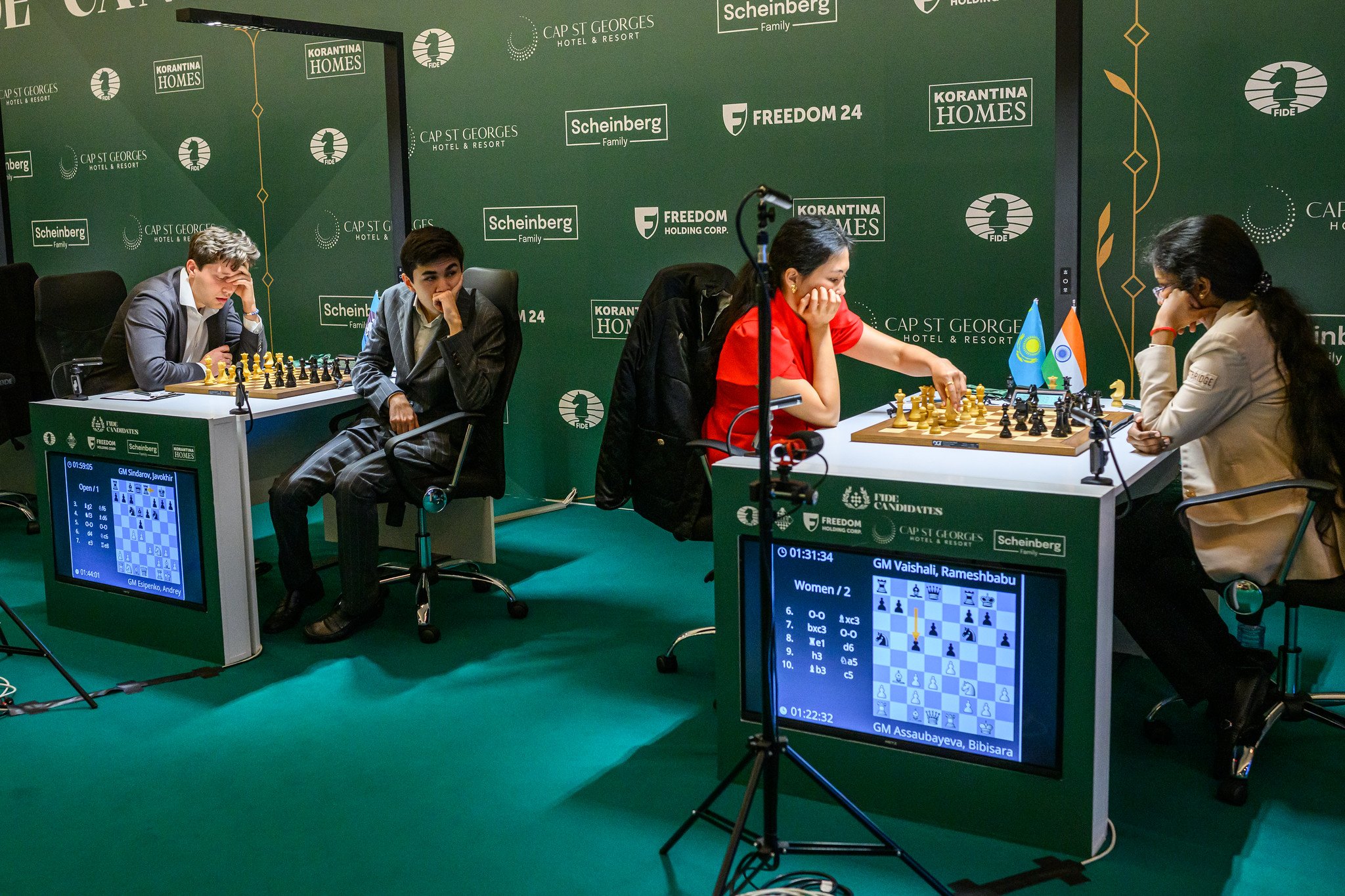 Bất chấp sự cố hy hữu xảy ra tại Giải đấu Ứng cử viên (Candidates) 2026 khi tài liệu chuẩn bị của người dẫn đầu Javokhir Sindarov bất ngờ bị rò rỉ, anh vẫn thản nhiên nhìn các kỳ thủ nữ thi đấu.