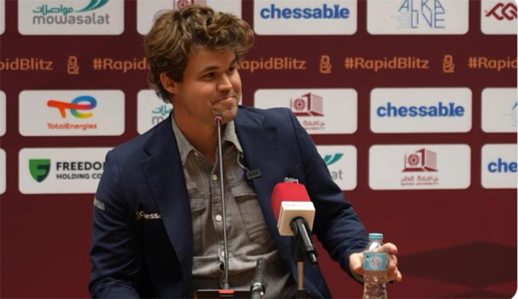 Ngày thi đấu cuối cùng của giải Vô địch cờ chớp thế giới 2025 tại Doha của Magnus Carlsen bắt đầu không thể tồi tệ hơn. Ở vòng 14, anh bất ngờ để thua Haik Martirosyan vì một lỗi sơ đẳng: làm đổ quân cờ khi chỉ còn 4 giây và bấm đồng hồ trước khi sắp xếp lại.