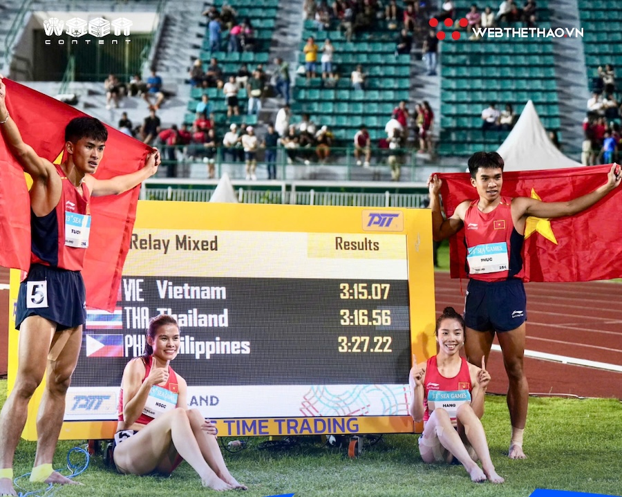 Thành tích 3 phút 15 giây 07 không chỉ đủ để mang về tấm huy chương vàng danh giá, mà còn phá sâu kỷ lục SEA Games. Đáng nói, kỷ lục cũ 3 phút 19 giây 29 do chính Thái Lan thiết lập tại SEA Games 31 trên đất Việt Nam tháng 5/2022.