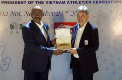 Chiều qua 22-11, Chủ tịch Điền kinh châu Á ông Dahlan Jumaan Al Hamad đã ghé thăm và có cuộc trao đổi ngắn với đội tuyển điền kinh Việt Nam.